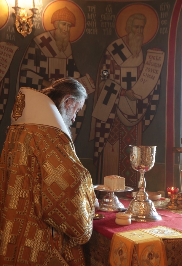 Позднюю Божественную литургию по благословению Святейшего Патриарха Московского и всея Руси Кирилла возглавил Председатель Синодального отдела по монастырям и монашеству, наместник Троице-Сергиевой лавры архиепископ Сергиево-Посадский Феогност.