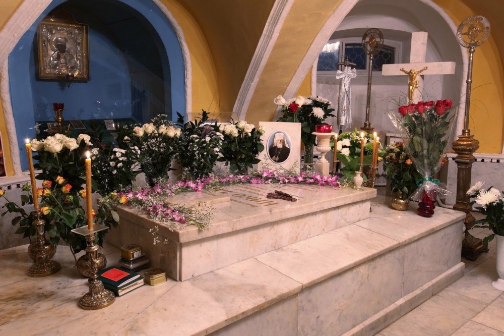 Затем Высокопреосвященнейший архиепископ Феогност отслужил литию возле надгробия приснопоминаемого митрополита Крутицкого и Коломенского Николая (Ярушевича, + 1961) в крипте Смоленской церкви Лавры.