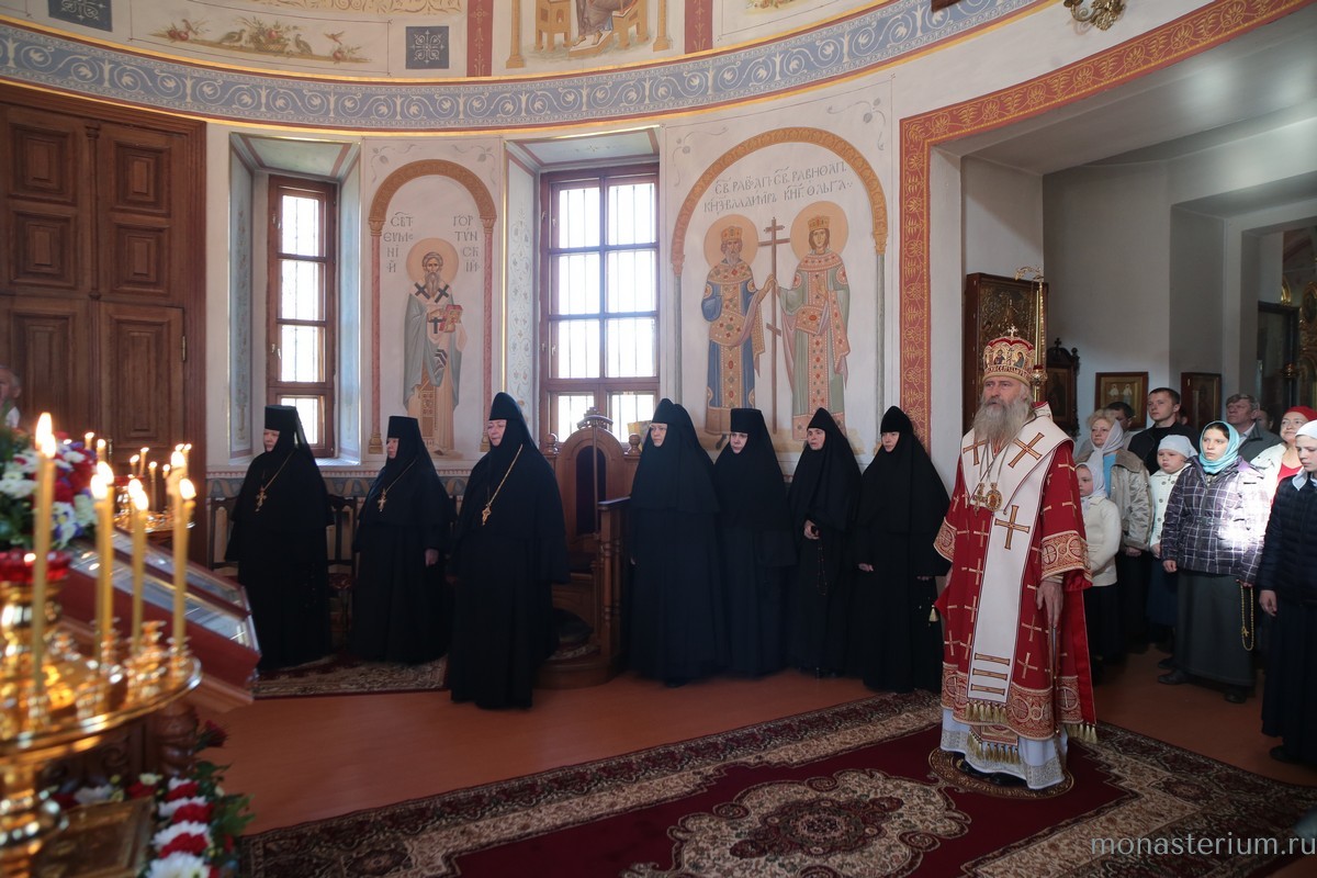 Его Высокопреосвященству сослужили заместитель председателя Синодального отдела по монастырям и монашеству архимандрит Стефан (Тараканов), монастырское духовенство и гости в священном сане.