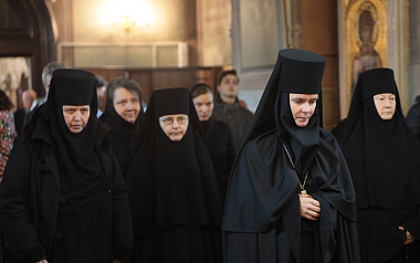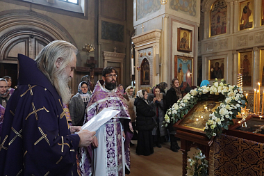 За богослужением молились руководитель Правового управления Московской Патриархии, настоятельница Алексеевского монастыря игумения Ксения (Чернега) с сестрами, прихожане обители.