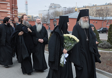 Его Высокопреосвященству сослужили наместник Саввино-Сторожевского ставропигиального мужского монастыря архимандрит Павел (Кривоногов), старший священник и духовник Алексеевского монастыря протоиерей Артемий Владимиров, клирики обители.