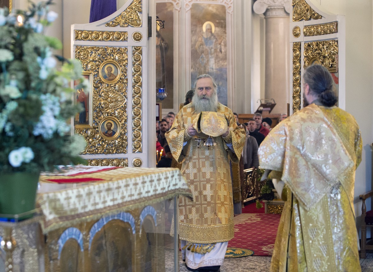 По окончании Литургии архиепископ Феогност совершил славление празднуемому святому и прочитал молитву перед чтимой иконой и ковчегом с частицей мощей благоверного князя Даниила Московского, изнесенными в центр храма.