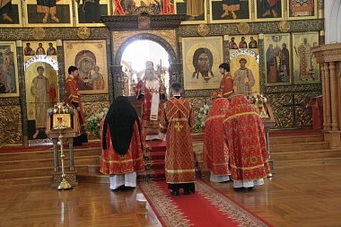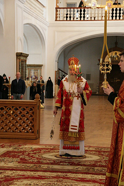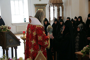 В этот день пасхальную Божественную литургию в Казанском соборе обители совершил председатель Синодального отдела по делам монастырей и монашеству архиепископ Каширский Феогност.