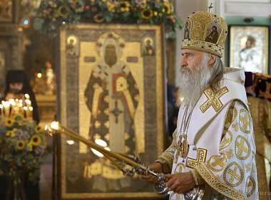 Накануне, 5 сентября, в Сергиевском храме Высоко-Петровского монастыря состоялось всенощное бдение, которое возглавил наместник обители игумен Петр (Еремеев). Перед полиелеем братия монастыря вместе с прихожанами совершили акафистное общенародное пение святителю Петру.