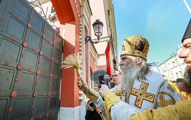 По окончании Литургии вокруг монастыря по Петровскому бульвару, Крапивенскому переулку и улице Петровке прошел Петровский крестный ход с чтимой иконой святителя Петра. На входе в обитель с Петровского бульвара архиепископ Феогност освятил святые врата.