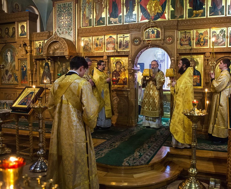 Его Высокопреосвященству сослужили и.о. начальника Московского подворья игумен Иосиф (Крюков) и клирики храма.