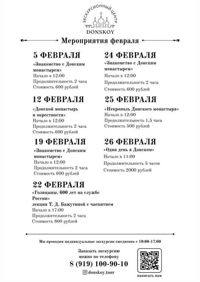 Экскурсионный центр Донского ставропигиального мужского монастыря Москвы приглашает на экскурсии по обители в феврале.