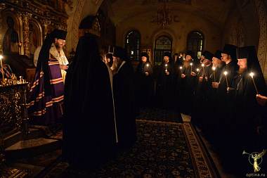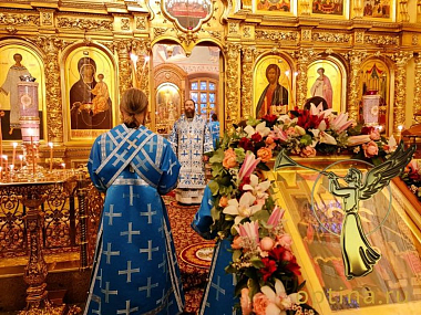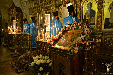 Всенощное бдение накануне и Божественную литургию в день престольного праздника во Введенском соборе возглавил наместник монастыря епископ Можайский Леонид в сослужении братии обители.