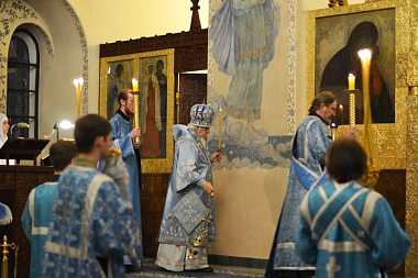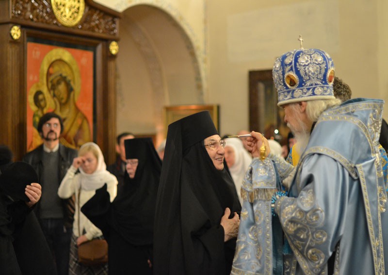 6 марта 2017 года всенощное бдение в храме Покрова Богородицы женского ставропигиального монастыря Марфо-Мариинская обитель милосердия возглавил председатель Синодального отдела по церковной благотворительности и социальному служению епископ Орехово-Зуевский Пантелеимон.