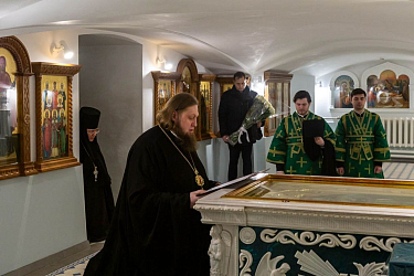 По прибытии в монастырь владыка спустился в храм-усыпальницу, где вознес молитву у гробницы святого праведного Иоанна Кронштадтского.