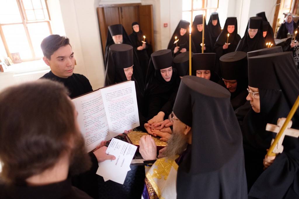 23 марта 2023 года, в четверг 4-й седмицы Великого поста, по благословению Святейшего Патриарха Московского и всея Руси Кирилла в Амвросиевском храме Новодевичьего ставропигиального женского монастыря наместник Данилова ставропигиального мужского монастыря епископ Солнечногорский Алексий совершил постриги насельниц обители: в монашество – инокини Татианы (Вялковой) с наречением имени Тавифа в честь праведной Тавифы Иоппийской, инокини Ольги (Вялковой) с наречением имени Вера в честь мученицы Веры Римской, инокини Людмилы (Шакаевой) с наречением имени Параскева в честь блаженной Параскевы Дивеевской, инокини Татианы (Гостинцевой) с наречением имени Матрона в честь преподобномученицы Матроны (Алексеевой); в иночество – послушниц Ольги (Игошиной) и Татианы (Касьян) с оставлением прежнего имени.