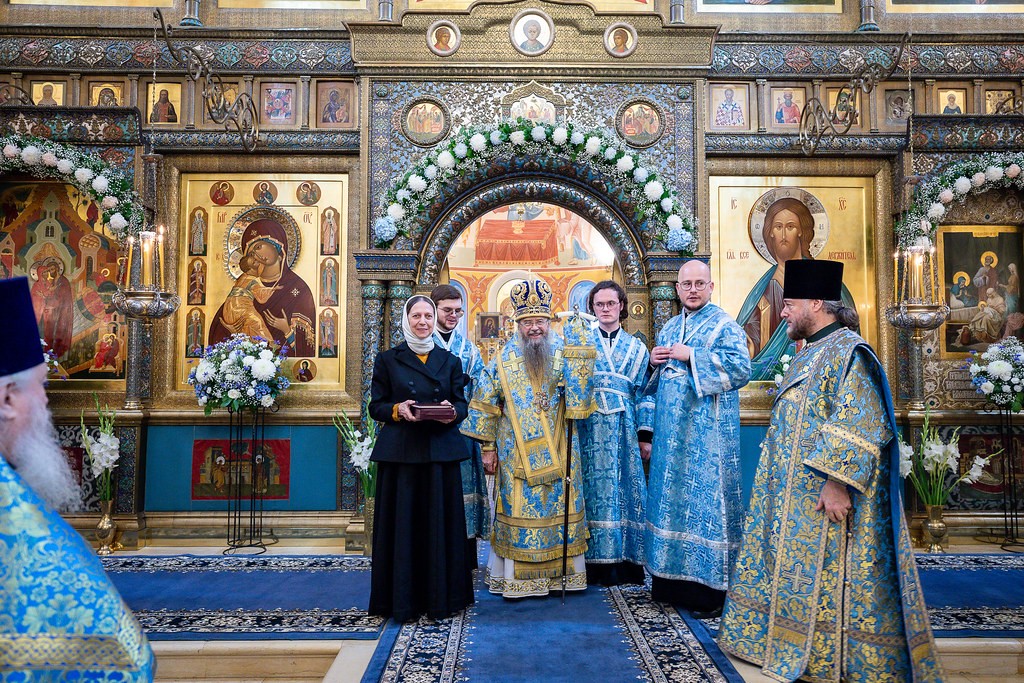 Под сводами недавно расписанного собора в честь Рождества Пресвятой Богородицы звучали праздничные песнопения, наполненные светлой радостью всего мира о рождении Преблагословенной Владычицы, Которой была отведена важная роль в осуществлении Божественного плана спасения человечества и тайны Боговоплощения. Пресвятая Дева Мария Своей чистотой и добродетелью превзошла не только всех людей, но и Ангелов, явившись живым храмом Божиим и, как пелось на богослужении, Небесной дверью, вводящей Христа во вселенную, во спасение душ наших.