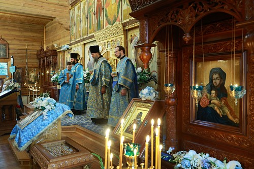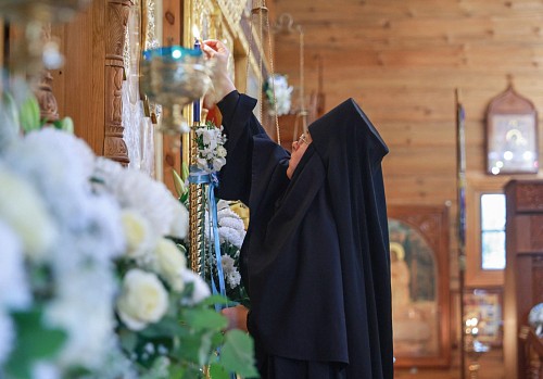 За Литургией молились заместитель председателя Синодального отдела по монастырям и монашеству, настоятельница Зачатьевского ставропигиального женского монастыря игумения Иулиания (Каледа), настоятельница Богородице-Рождественского ставропигиального женского монастыря игумения Викторина (Перминова), прихожане и гости обители.