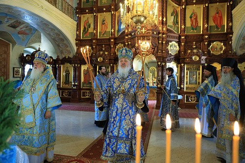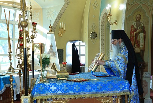 Его Преосвященству сослужили наместник Высоцкого ставропигиального мужского монастыря епископ Серпуховской Роман, братия обители в священном сане.
