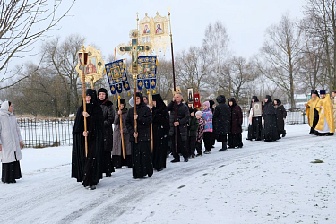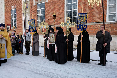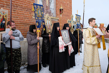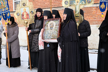По окончании Литургии состоялся крестный ход с почитаемой в обители иконой святителя Николая Чудотворца.