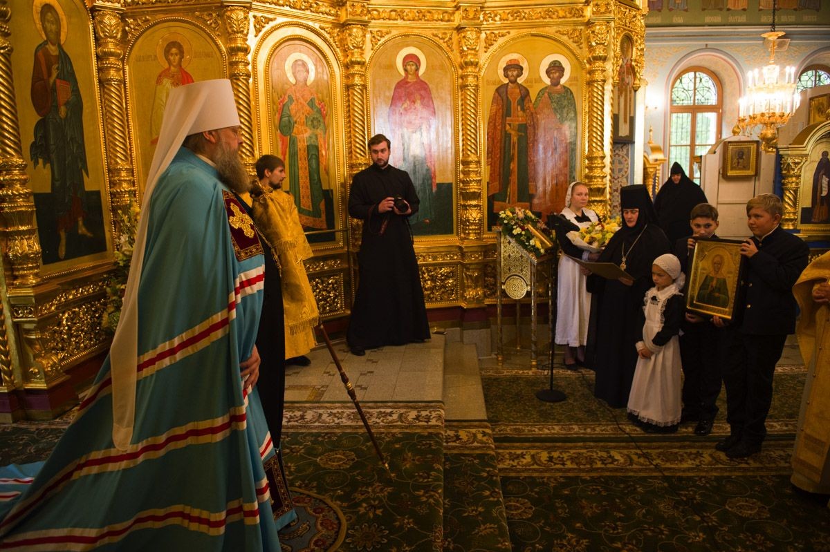 Поэтому слово мое прежде всего к Вам Досточтимая Матушка, а так же наставникам и учителям, всем тем, кто помогает Вам воспитывать в этой гимназии детей. Слово благодарности с низким поклоном и с пожеланием огромной помощи Божией. И конечно, в этом процессе воспитания, духовного созидания личности, должны участвовать не только учителя и ученики. Обязательно в этом процессе должны участвовать родители, потому что если ребенок приходит из гимназии и видит совсем не то, что ему преподавали в школе и сталкивается с неправильным миром восприятия и устройства в своей собственной семье, то, конечно, его жизненный опыт и восприятие этого мира искажается, происходит надлом в душе маленького человека, который долго не заживает, а если заживает, то оставляет после себя рубцы, которые очень тяжело врачуются в душе. Иногда эти раны, несоответствия в семейной, общественной, школьной жизни, духовной жизни печальным опытом могут отозваться в дальнейшей его судьбе. Поэтому обращаюсь сегодня, благодарю Матушку игумению, педагогов за воспитание, и конечно же я обращаюсь к родителям и прошу вас быть верными и мудрыми помощниками в воспитании ваших собственных детей, за которых вы, прежде всего, и несете ответственность перед Богом. Я хотел бы поблагодарить пастырей, которые совершают свое служение здесь в гимназии, духовно назидая, учеников и воспитанников, научая их Закону Божиему, прививая им любовь к Богослужению и Таинствам Святой Церкви.