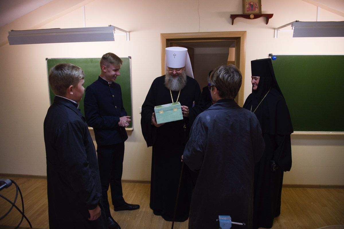 Митрополит Меркурий посетил учебный корпус гимназии, где осмотрел учебные классы и познакомился с учащимися. В честь юбилея ученики гимназии организовали праздничный концерт.