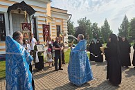 В монастыре Блаженнейшего митрополита Ростислава встречала настоятельница обители игумения Людмила (Волошина), клирики и сестры.