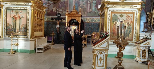 Гостю показали храмы и святыни обители, экспозицию Музея Библии и мемориальные покои митрополита Волоколамского и Юрьевского Питирима (Нечаева), трудами которого начиналось возрождение монастыря.