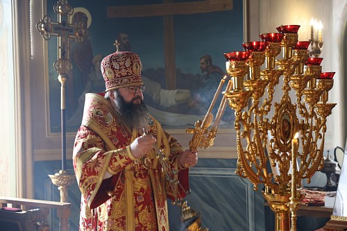 За Литургией в Троицком храме Его Высокопреосвященству сослужили клирики Смоленской епархии и клирики Троице-Одигитриевского монастыря.