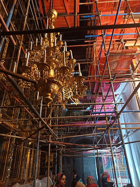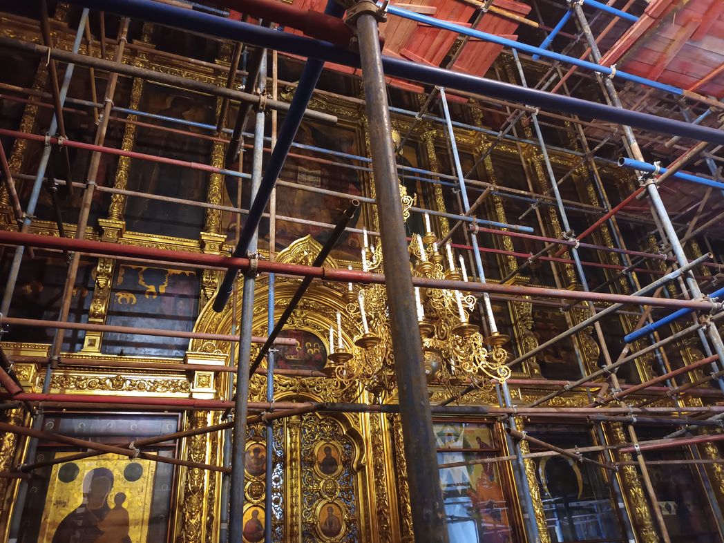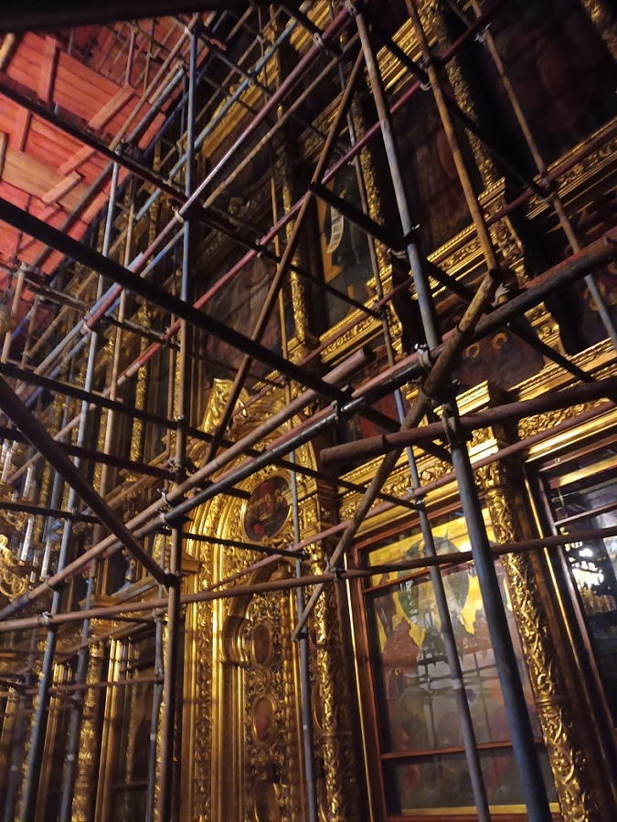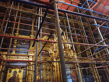 В Новоспасском ставропигиальном мужском монастыре города Москвы ведутся восстановительно-реставрационные работы на Спасо-Преображенском соборе. Сейчас весь величественный объем древнего собора скрыт темно-зеленой сеткой. Этот собор начали строить по указанию царя Михаила Федоровича Романова и закончили уже при царе Алексее Михайловиче в середине XVII века. Он вырос на месте обветшавшего храма, который стоял здесь с 1497 года. Монументальное здание высотой 32 метра, уступавшее по размерам разве что Успенскому собору Кремля.