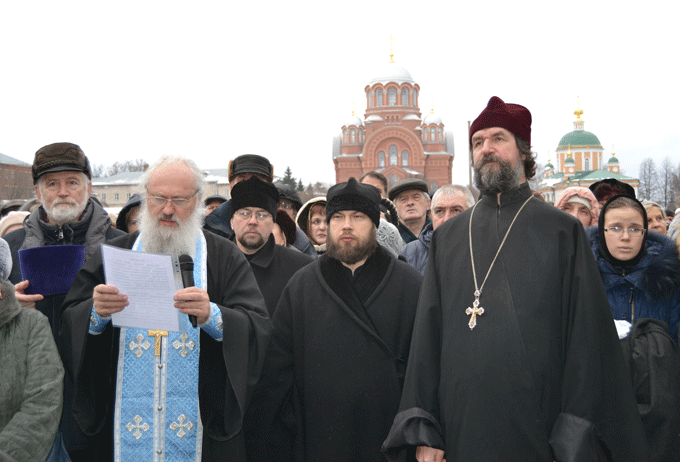 Молебен на освящение памятника совершил клирик Покровского Хотькова ставропигиального женского монастыря протоиерей Евгений Корчуков.