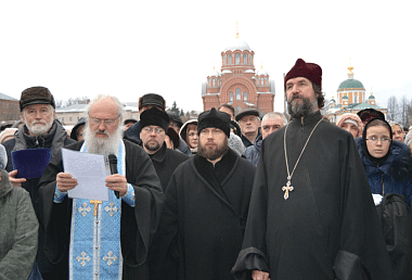На молебне пел хор Покровского Хотькова монастыря.