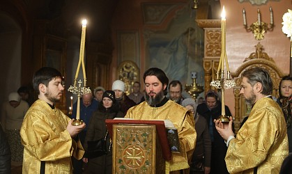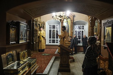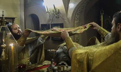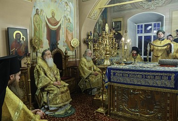 Его Высокопреосвященству сослужили наместник Высоцкого монастыря епископ Серпуховский Роман, братия обители в священном сане.