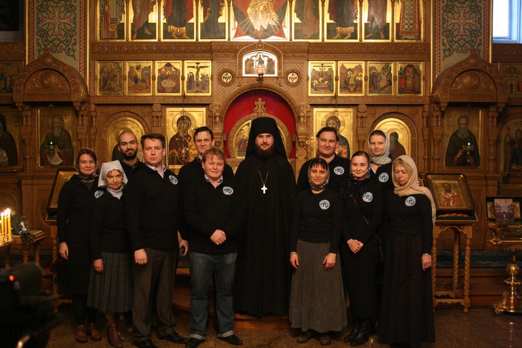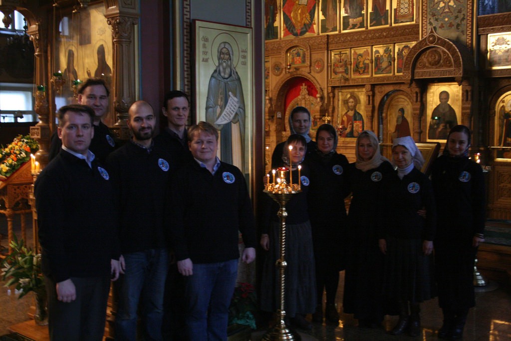 По окончании Божественной литургии миссионеры сфотографировались с духовником братства и настоятелем храма Прпп. Сергия и Германа Валаамских игуменом Иосифом (Крюковым) и преподнесли Его Высокопреподобию по случаю праздника букет цветов.