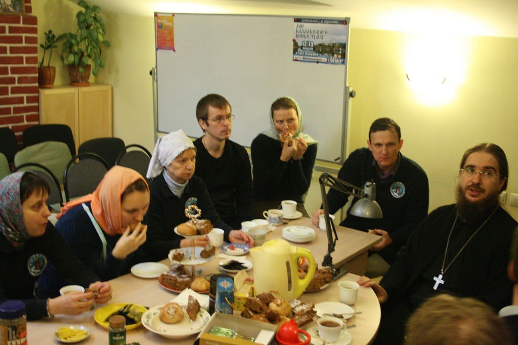Вслед за этим в помещении Воскресной школы Подворья состоялось чаепитие, на которое были приглашены все желающие прихожане. Во время чаепития состоялось обсуждение плана мероприятий братства по случаю наступающих праздников.