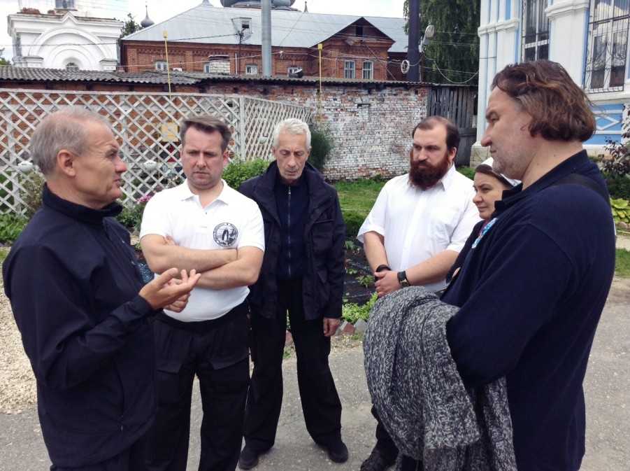 В этот же день участники поездки встретились с сотрудниками Миссионерского отдела епархии, которые рассказали о миссионерских и просветительских проектах Рязани, поделились своим видением миссионерской работы на приходах. В заключение встречи Дмитрий Захаркин выступил с сообщением о служении братства, а также продемонстрировал специально привезенные миссионерские материалы. Членами братства была предложена инициатива о включении имени преподобного Германа Аляскинского в список Собора Рязанских святых. После посещения Миссионерского отдела епархии группу ждала экскурсия местного краеведа по святым местам Рязани.