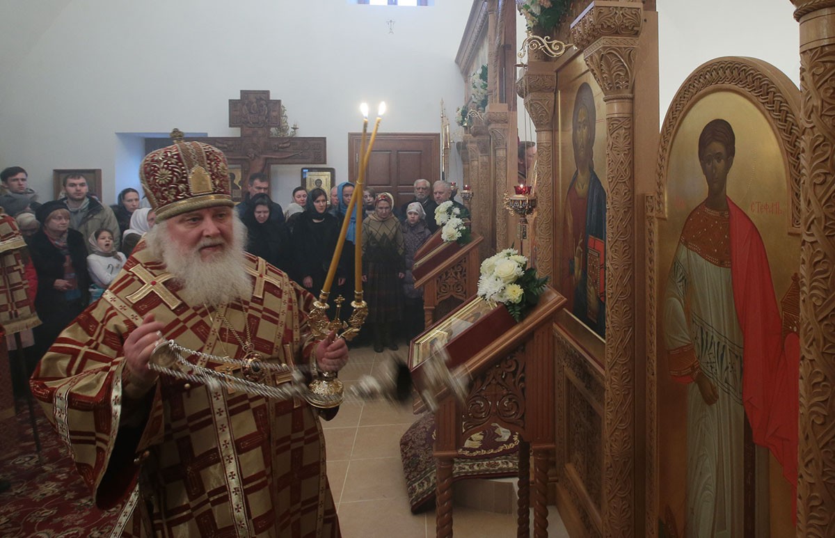 Накануне вечером в храме Святой великомученицы Анастасии Узорешительницы, отслужив вечерню и литию, за утреней по прочтении Евангелия и исполнения величания во время чтения канонов митрополит Арсений совершил помазание елеем молящихся в храме.