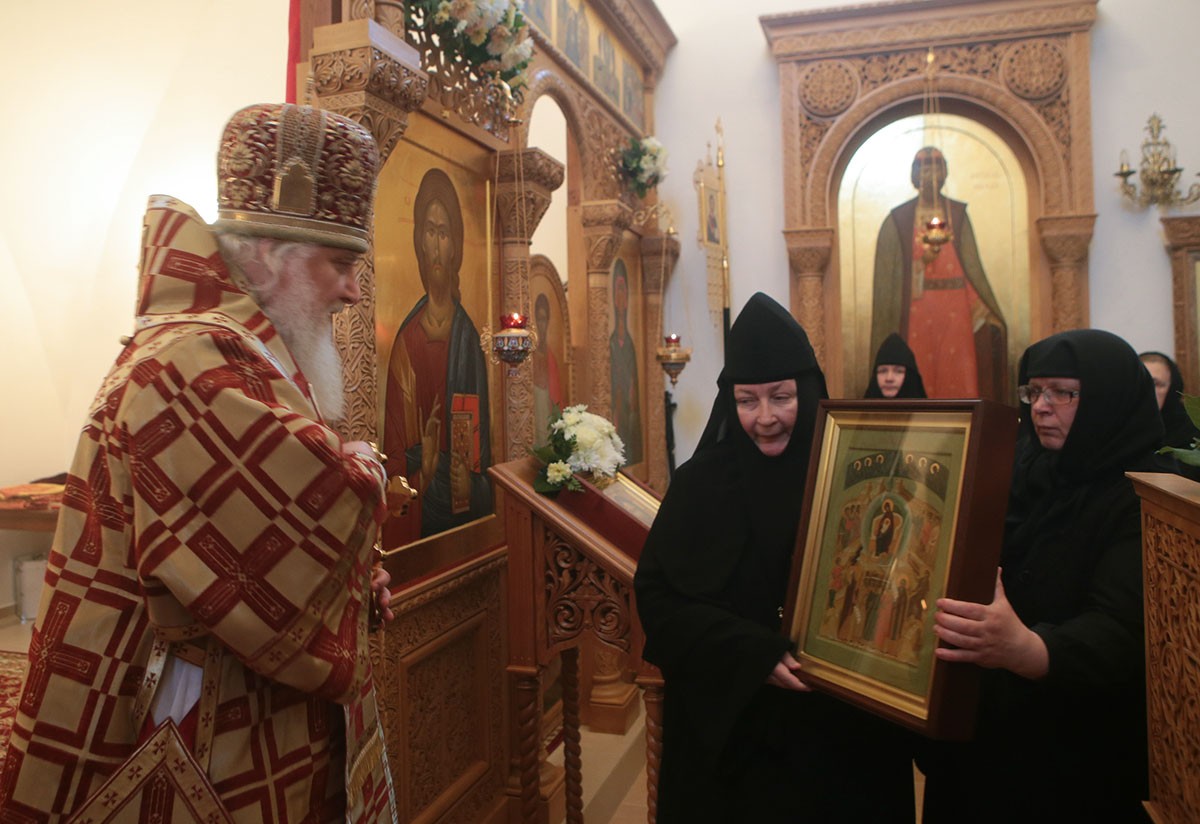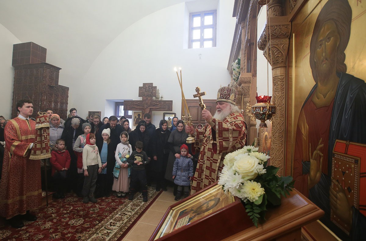 Затем игумения Мария поблагодарила Владыку за совершение Таинства Евхаристии и совместной молитвы. Матушка вспомнила историю храма, основанного первоначальницей монастыря игуменией Евгенией (Мещерской) в честь Небесной покровительницы своей дочери Анастасии при «больничном» корпусе.