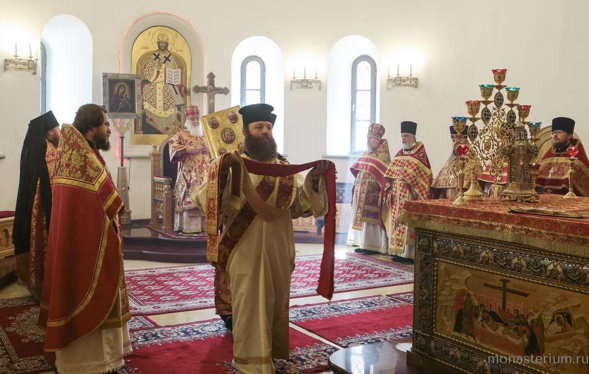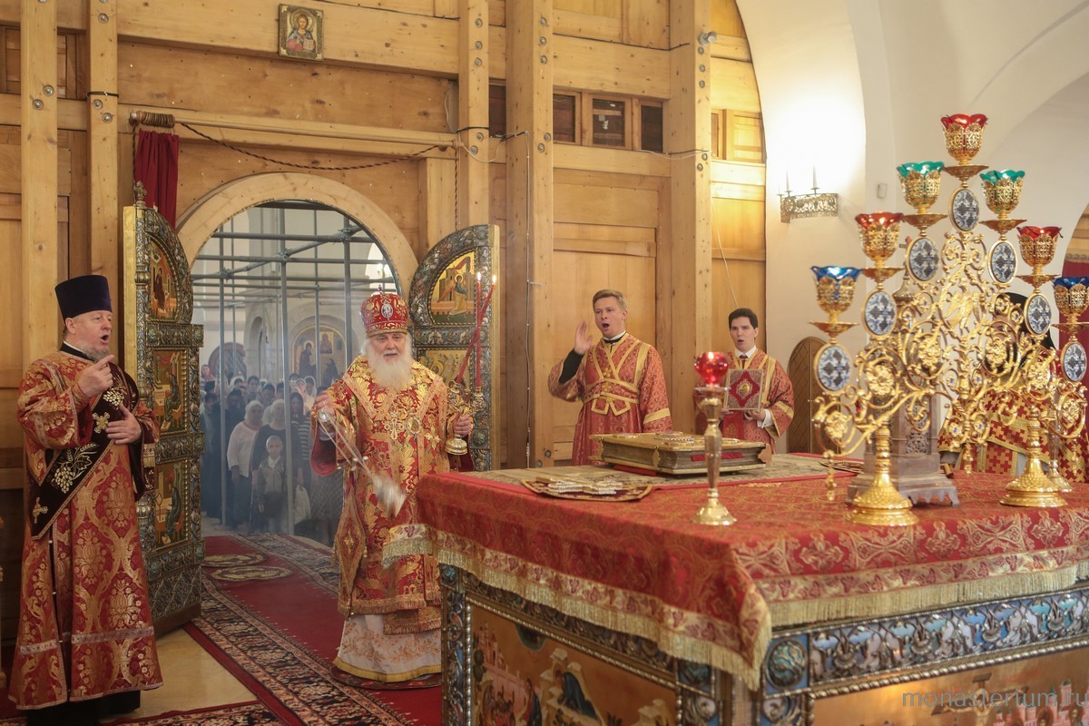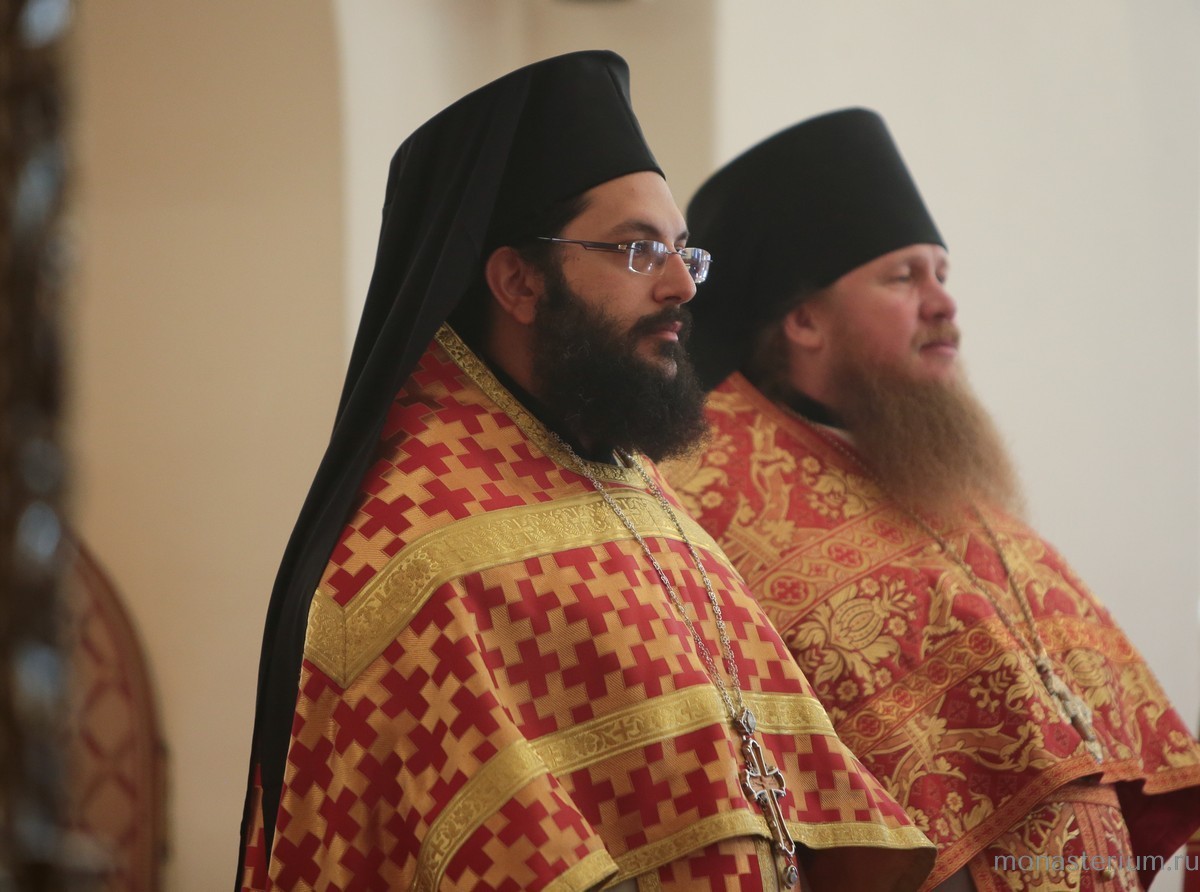 Его Высокопреосвященству сослужили: наместник Николо-Угрешского ставропигиального мужского монастыря игумен Варфоломей (Петров); благочинный Воскресенского благочиния г. Москвы протоиерей Александр Дасаев; настоятель храма Троицы Живоначальной на Грязех у Покровских ворот протоиерей Иоанн Каледа; настоятель храма Новомучеников и исповедников Церкви Русской в Бутове протоиерей Кирилл Каледа; представители Антиохийской и Элладской Православных Церквей, а также монастырское духовенство.