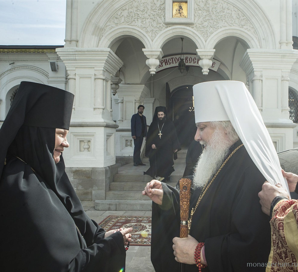 По окончании Литургии игумения Иулиания поздравила митрополита Арсения с отданием праздника Пасхи и днем памяти преподобных Иулиании и Евпраксии и преподнесла Его Высокопреосвященству пасхальное яйцо с изображением основательниц монастыря.
