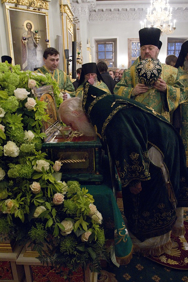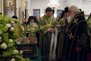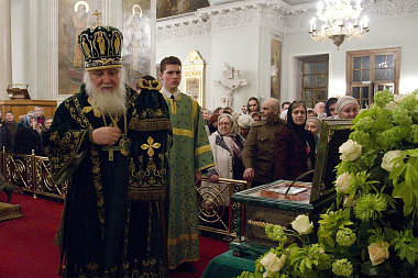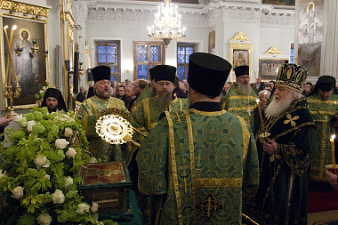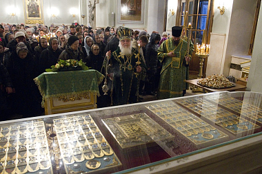 В монастырском храме Святых Отцов семи Вселенских Соборов митрополит Арсений поклонился честным мощам благоверного князя Даниила Московского.