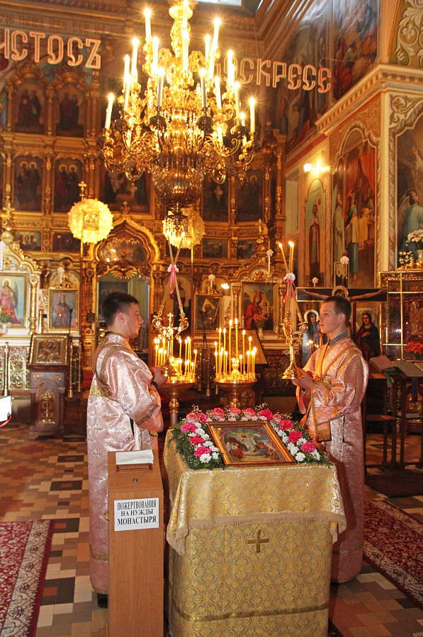 Накануне, перед вечерним богослужением, митрополит Днепропетровский и Павлоградский Ириней отслужил панихиду на могиле игумении Наталии (Ильчук), которая находится у алтарной части Троицкого храма, и по окончании ваечерни возглавил чтение акафиста Воскресению Христову.