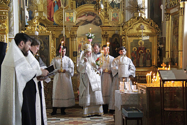 В день монастырской Радоницы Божественную литургию возглавил митрополит Днепропетровский и Павлоградский Ириней, приехавший помолиться за своих усопших родителей, которые погребены на Георгиевском городском кладбище.