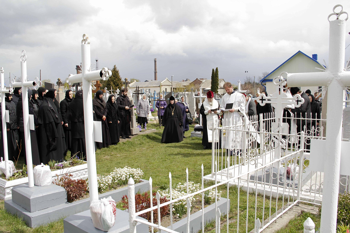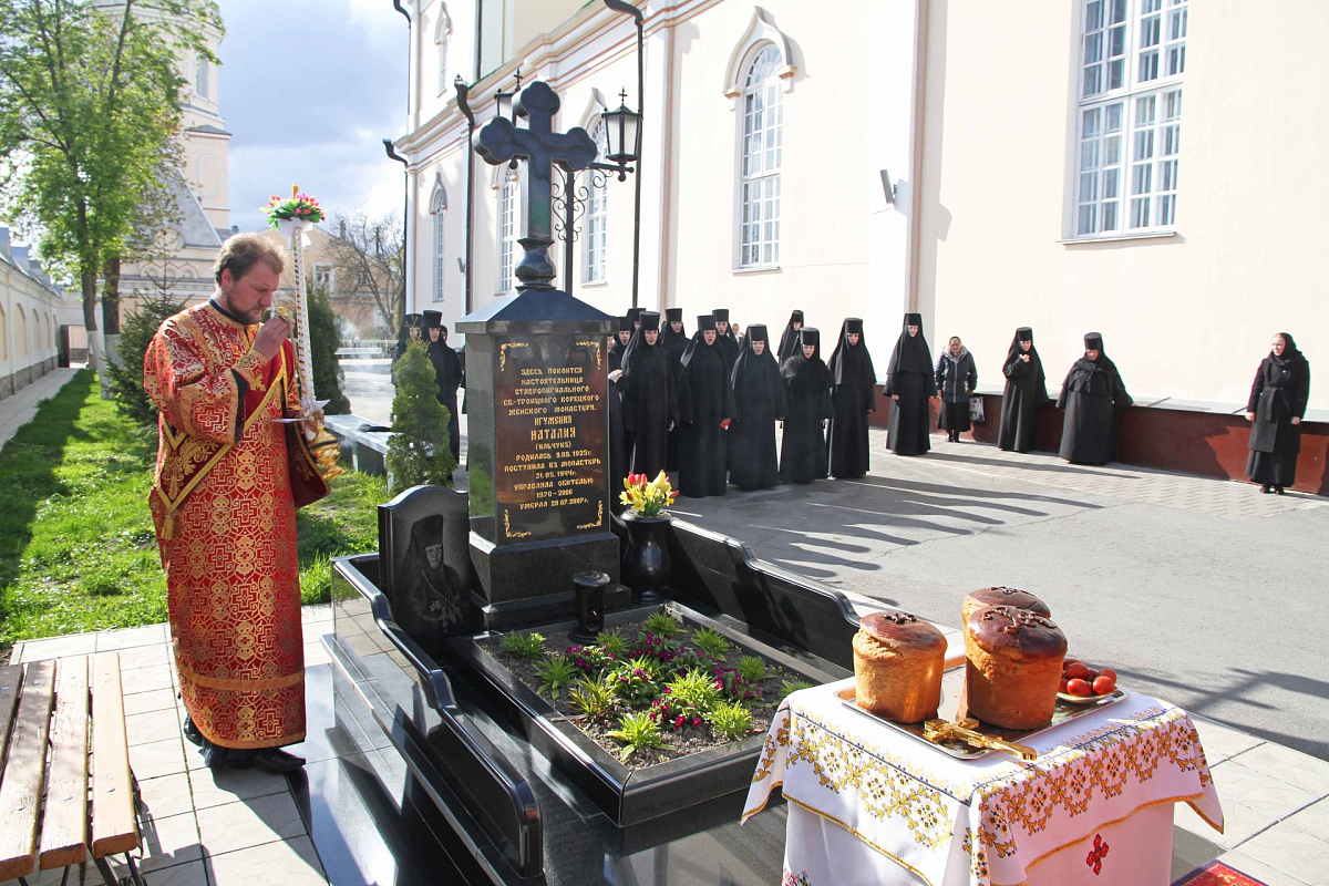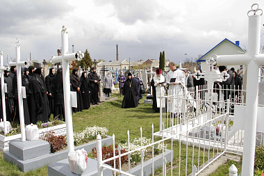 Панихиду по усопшим игумениям, священнослужителям и сестрам обители на кладбище отслужил митрополит Днепропетровский и Павлоградский Ириней в сослужении монастырского духовенства. В завершение Его Высокопреосвященство совершил панихиду на могиле своих родителей.