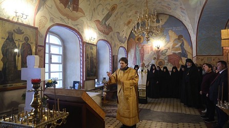 По окончании Божественной литургии была совершена лития по архимандриту Петру (Афанасьеву), духовнику обители, погребенному в правом приделе храма.