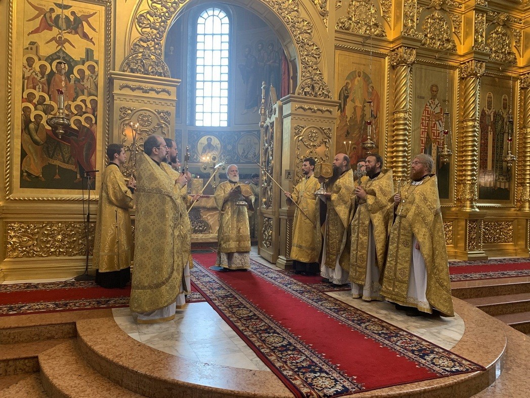 Его Высокопреосвященству сослужили клирики обители в священном сане.