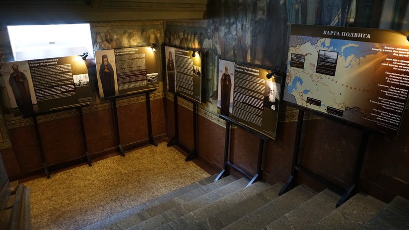 Кроме того, на стендах представлены выдержки из выступлений Святейшего Патриарха Московского и всея Руси Кирилла, игумена Спасо-Преображенского Валаамского монастыря, епископа Троицкого Панкратия, посвященные теме почитания новомучеников.