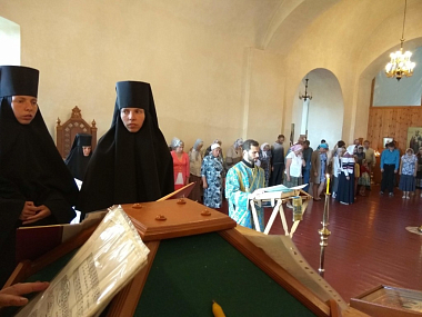 В храме молились несущие послушания на подворье сестры и прихожане монастыря.