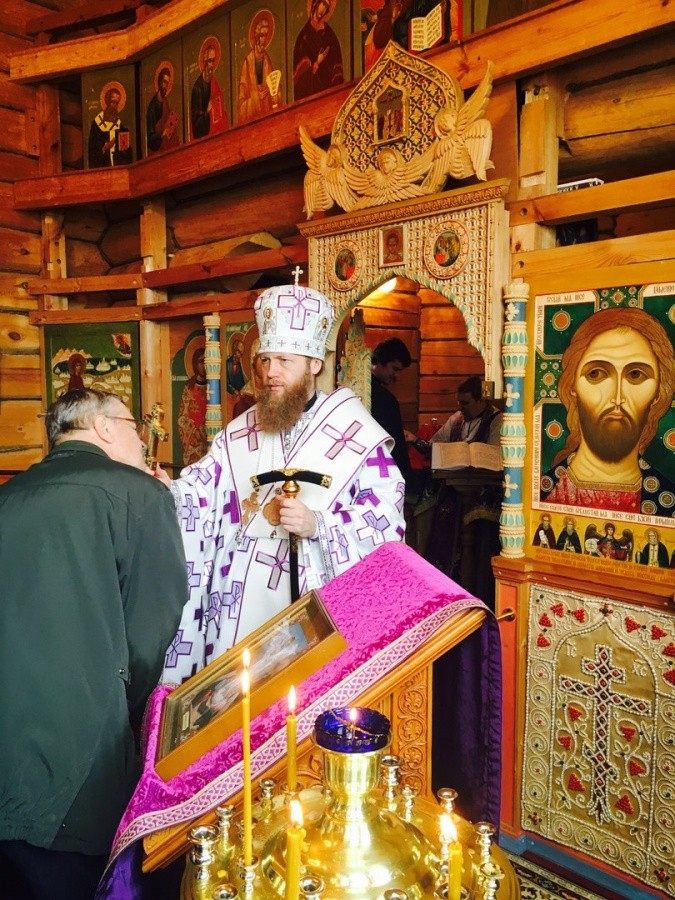 Его Преосвященству сослужил настоятель Подворья иеромонах Сергий (Филиппов).