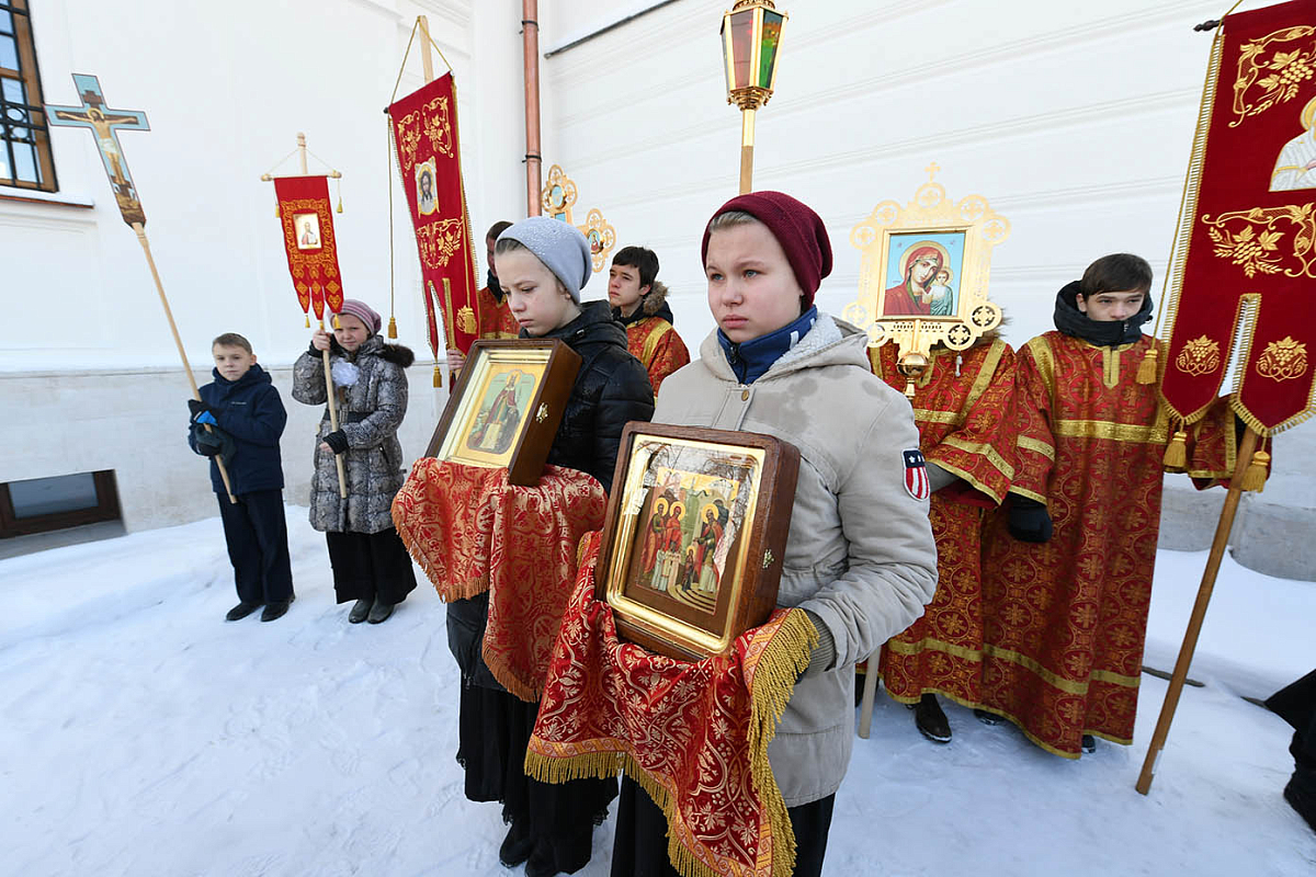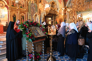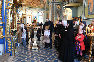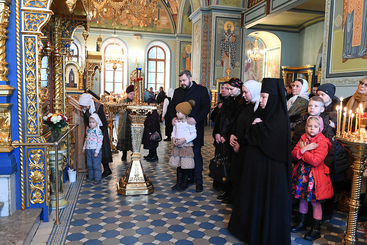 За богослужением молились: настоятельница Покровского ставропигиального женского монастыря игумения Феофания (Мискина), насельницы подворья, воспитанницы детского приюта обители, ученики и учителя НОЧУ «Православная гимназия в Троице-Лыкове г. Москвы» и прихожане.