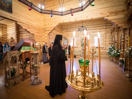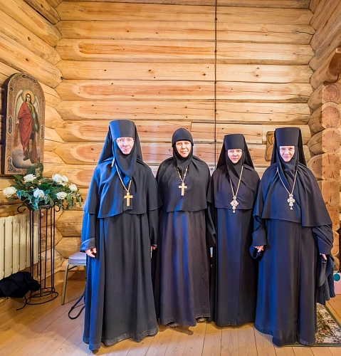 За богослужением молились заместитель председателя Синодального отдела по монастырям и монашеству, настоятельница Зачатьевского монастыря игумения Иулиания (Каледа) с сестрами, настоятельница Свято-Николаевского монастыря Донецкой епархии игумения Анна (Морозова), настоятельница Никитского монастыря д. Бывалино Московской области игумения Капитолина (Филиппенко), настоятельница Покровского Александро-Невского монастыря р.п. Колывань Новосибирской области монахиня Мария (Гурвич).