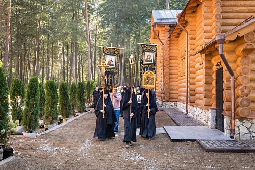 По окончании Литургии был совершен крестный ход к месту расположения землянки, где укрывались в 30-е годы XX века насельницы монастыря, и совершена заупокойная лития.