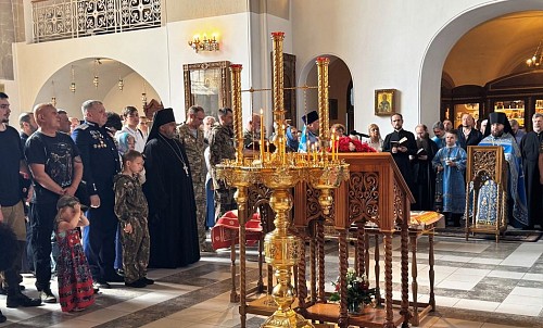 Чин освящения совершил игумен Иосиф (Крюков) в сослужении братии подворья в священном сане. За богослужением вместе с воинами и прихожанами молились временно исполняющий обязанности главы администрации Адмиралтейского района Санкт-Петербурга Д.В. Вакушин, руководитель Комитета Семей Воинов Отечества на Неве Л.С. Рубаник, координатор федерального партийного проекта «Женское движение Единой России» в Санкт-Петербурге И.Г. Бурба, организатор волонтерского движения «Феникс» и руководитель регионального Союза Ветеранов Боевых Действий «Отчизна» Е.А. Егорова, а также настоятель храма Тихвинской иконы Божией Матери в Сестрорецке и духовник Казачьего Цесаревича Алексия Батальона архимандрит Гавриил (Коневиченко).