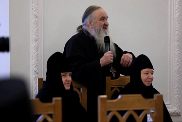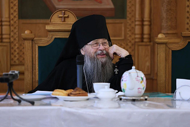 В начале встречи владыка познакомил собравшихся с историей обители, рассказал о пострадавшей за веру в годы гонений на Русскую Православную Церковь братии монастыря и о тех, у кого он сам учился монашеству, кто передал духовную традицию инокам возродившихся обителей.