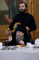 Обсуждая проблемы современного монашества, участники встречи высказали предложение, используя возможности современных технологий, создать объединенный монастырский синодик, куда нуждающиеся в молитвенной помощи могли бы присылать имена для поминовения.